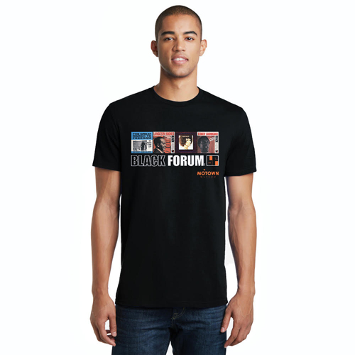 Black Forum T-shirt, representing Motown's Black Forum label, and the work of Leaders and Spoken Word Artist. Relaxed fit, made of 100% fine cotton.