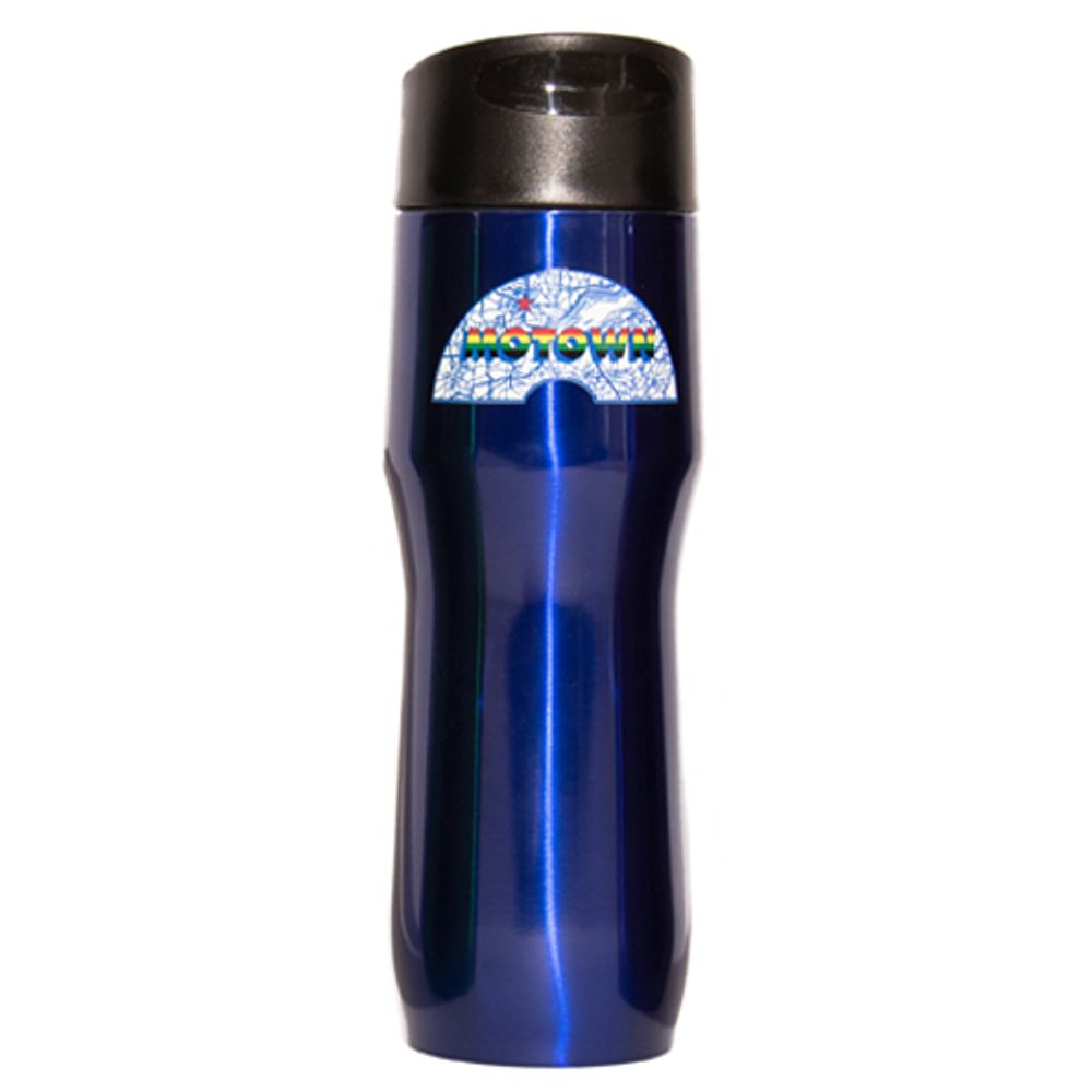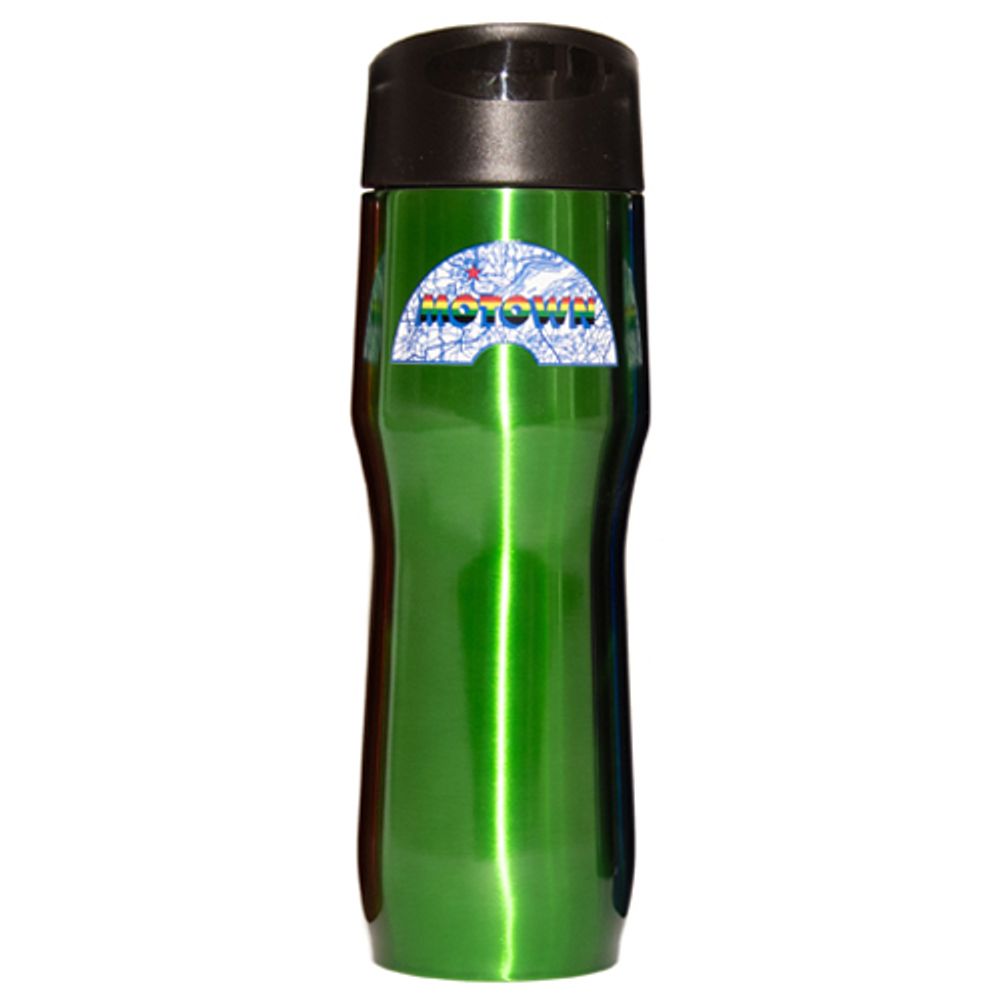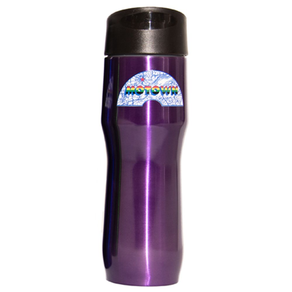 When on the go, quench your thirst with our Motown Museum traveler bottle. The 16oz. stainless steel, vacuum insulated bottle features a leak proof lid with push button locking closure, lip and finger grooves and the iconic 45 Mlabel.